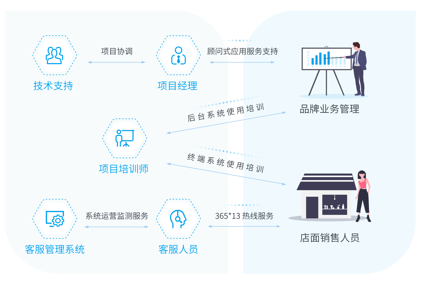 系統(tǒng)化的技術(shù)支持、業(yè)務(wù)培訓(xùn)、系統(tǒng)運(yùn)維、代運(yùn)代管服務(wù),將助力品牌以更高的質(zhì)量、更快速的響應(yīng)和更低的成本投入,開(kāi)展品牌零售數(shù)字化。